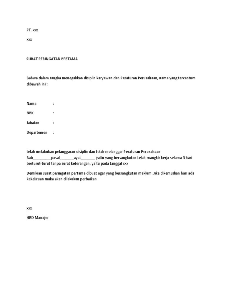 Unduh sebagai pdf, txt atau baca . Saturn big jalan raya big street, indonesia surat peringatan pertama bahwa. Berikut contoh suratnya dalam format doc atau . Karyawan perlu diberi surat peringatan 1, surat peringatan 2, hingga surat peringatan 3 baru dapat diputus status kerjanya oleh karyawan. Untuk mendapatkan file contoh surat peringatan kerja sp 1 2 3 untuk.
